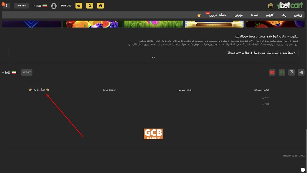 - سایت اصلی: betcart.com (یا آدرس های جایگزین بدون فیلتر که در باشگاه کاربران اعلام می شود).