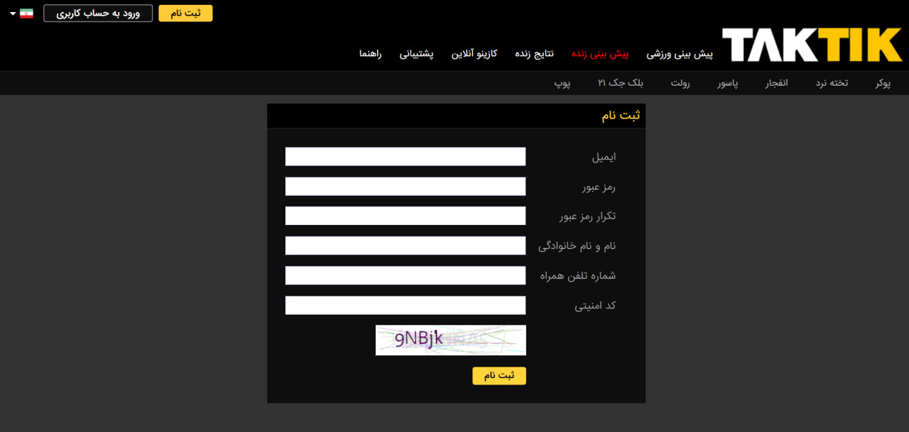 ۱. چگونه در تاک تیک بت ثبت نام کنم؟