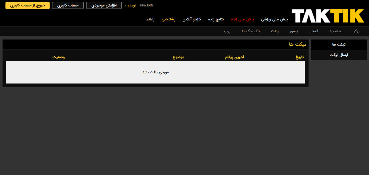 یکی دیگر از مزایای تاک تیک بت، پشتیبانی حرفه ای و 24 ساعته در بخش پیش بینی است. کاربران می توانند در هر زمان سوالات خود را مطرح کنند و از مشاوره کارشناسان بهره مند شوند. همچنین امکان مشاهده تاریخچه شرط بندی و مدیریت سرمایه به کاربران کمک می کند تا کنترل بهتری روی فعالیت های خود داشته باشند.