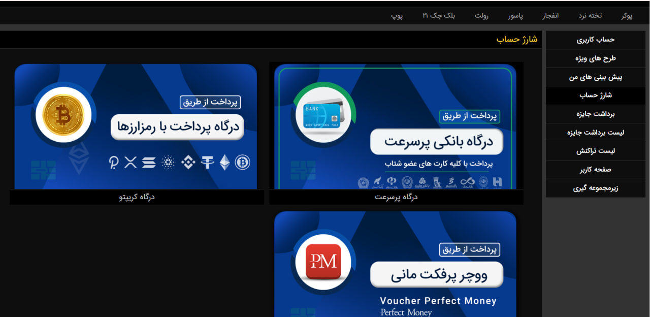 - روش های شارژ حساب متنوع: کاربران می توانند از کارت بانکی، درگاه بانکی، کیف پول دیجیتال و حتی ارزهای دیجیتال برای شارژ حساب استفاده کنند.