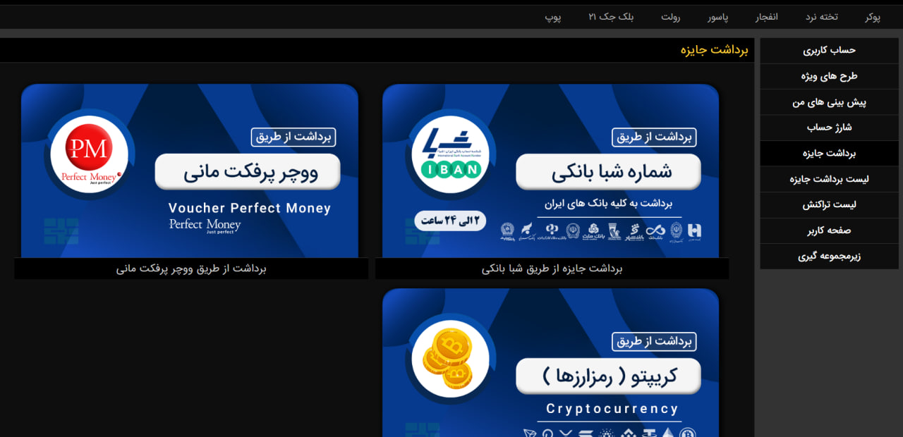 - کازینو آنلاین: شامل بازی های کلاسیک مانند رولت، پوکر، بلک جک و ماشین اسلات و همچنین بازی های مدرن و محبوب مانند انفجار و کازینو زنده است که تجربه ای جذاب و هیجان انگیز برای کاربران فراهم می کند.
